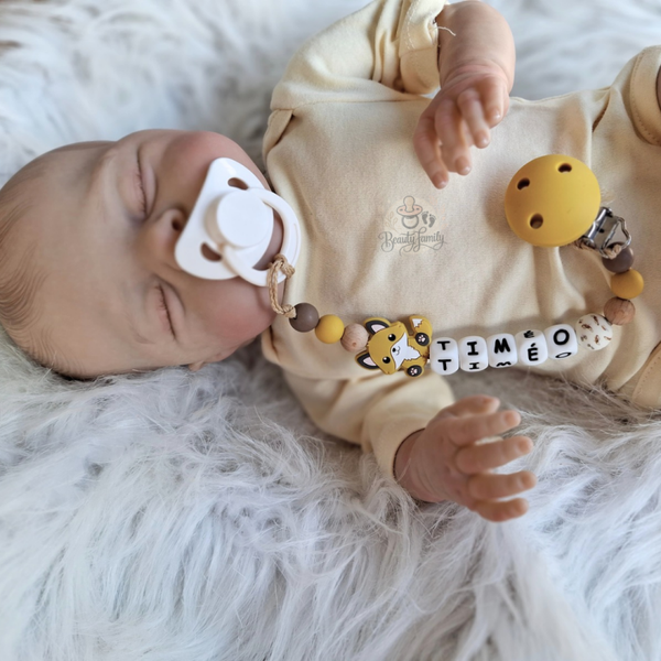 Pratique et sécurisant, il garde la tétine toujours à portée de main, tout en ajoutant une touche ludique au quotidien de bébé 🌿.